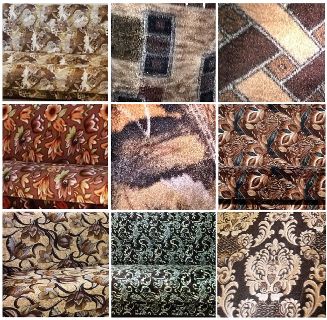 Цвет обивки - коричневый, разноцветный. Обивка изготовлена из велюра, флока. В качестве наполнителя применяется пенополиуретан.