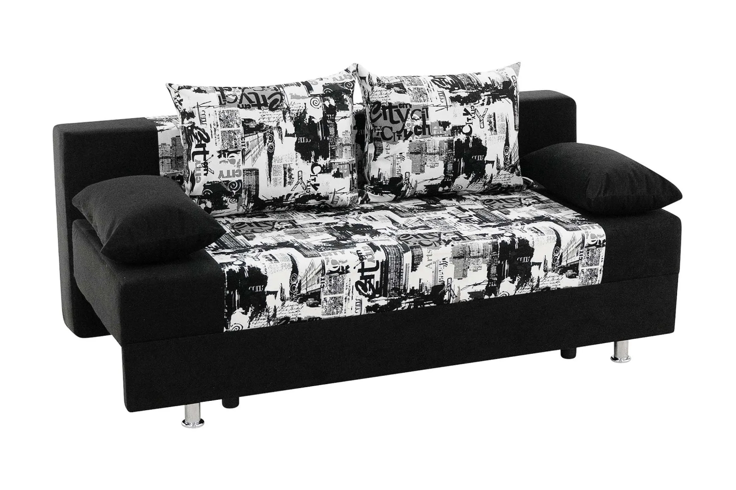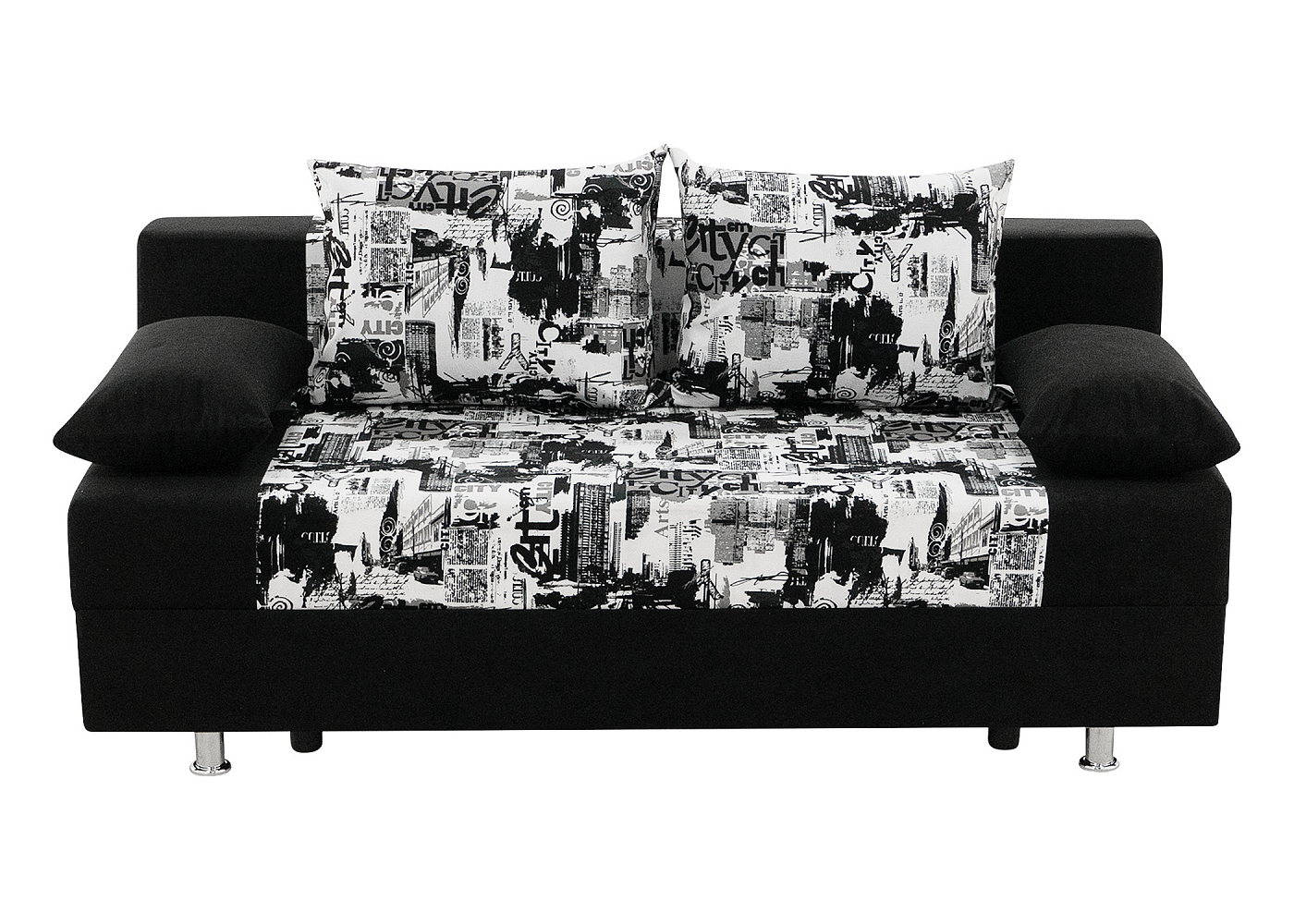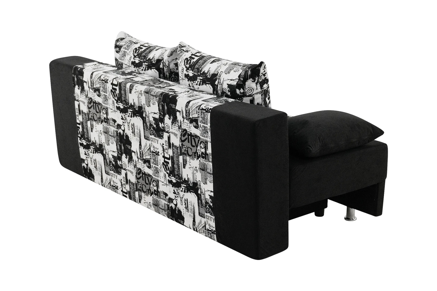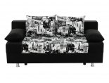 Спинка дивана декорирована мягкими подушками, что повышает удобство расположения на нем. Под сиденьем располагается вместительный ящик для хранения постельного белья.