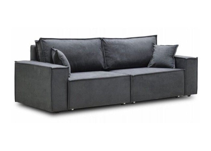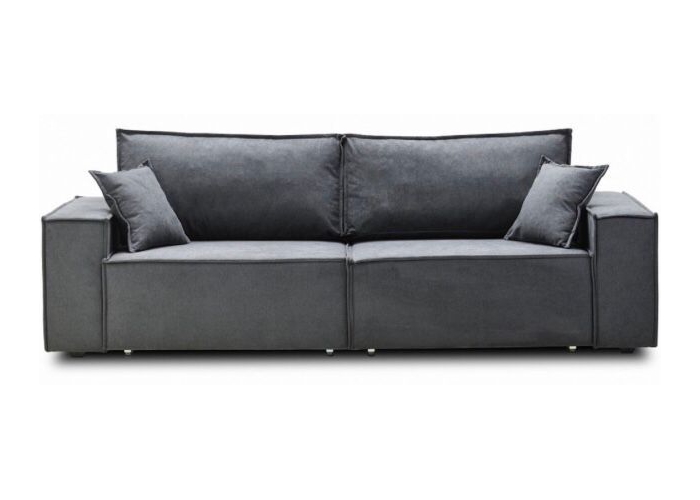 Диван выполнен в сером цвете и рассчитан на три человека.