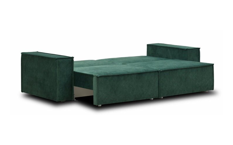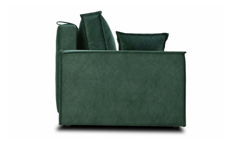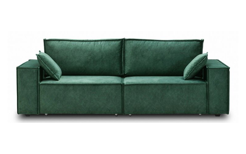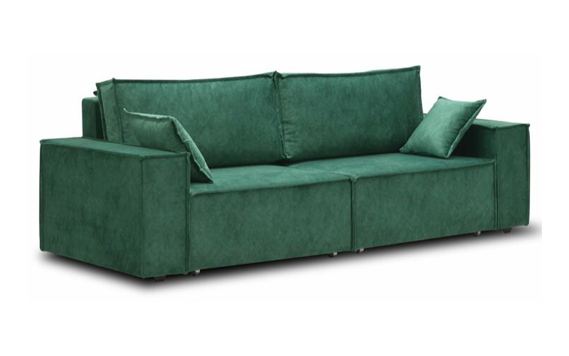 Диван выполнен в зеленом цвете и рассчитан на три чел.
