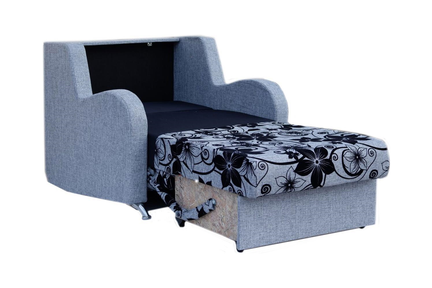 Диван выкатной "Гармония-1" 80 - Серые цветы (флок на рогожке) / Серая рогожка