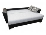 Спинка дивана декорирована мягкими подушками, что повышает удобство расположения на нем. В комплекте 4 подушки (две большие и две малые). Под сиденьем располагается вместительный ящик для белья.