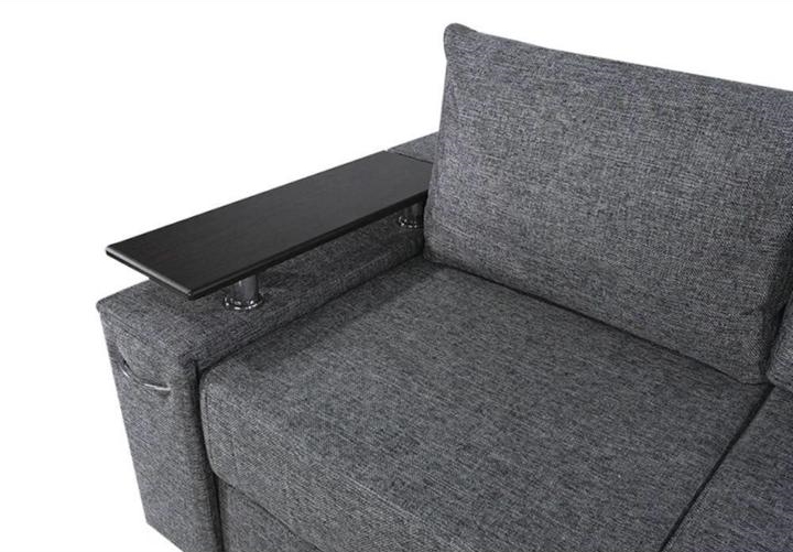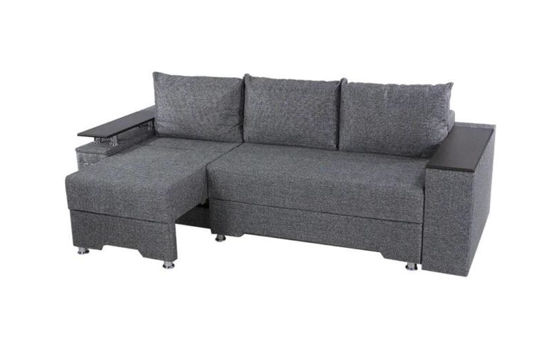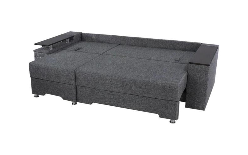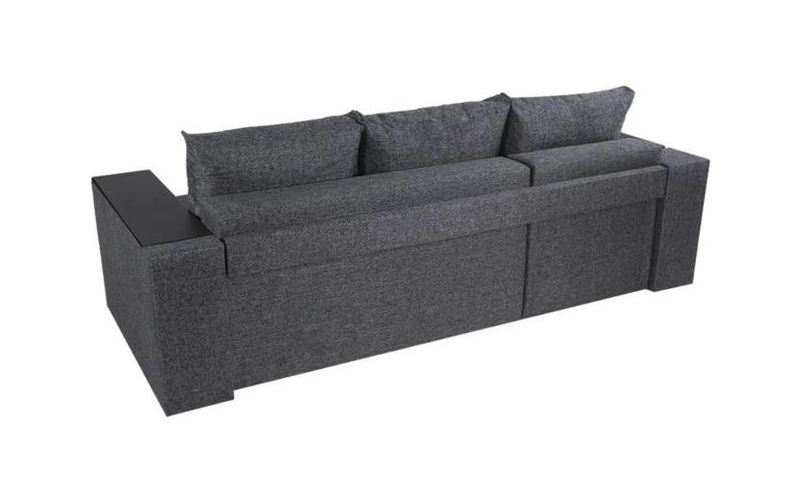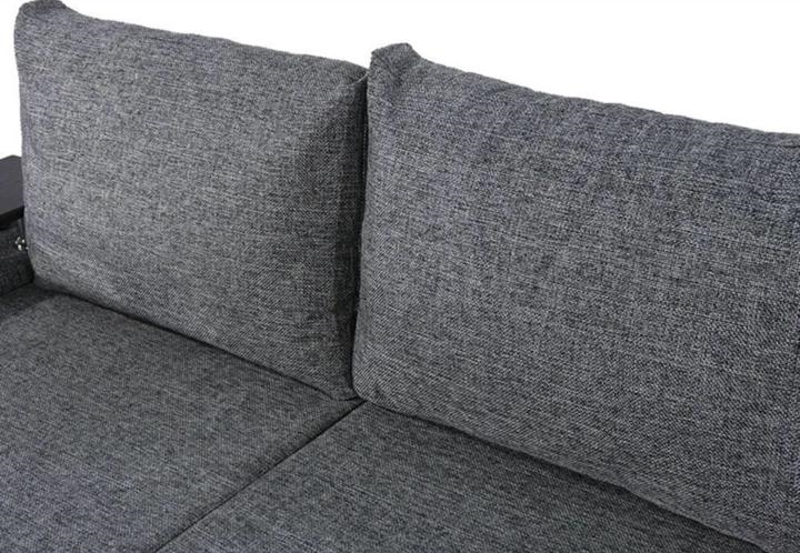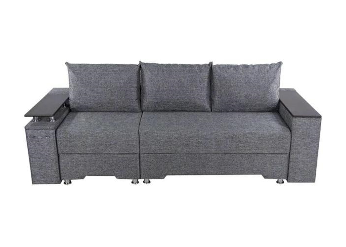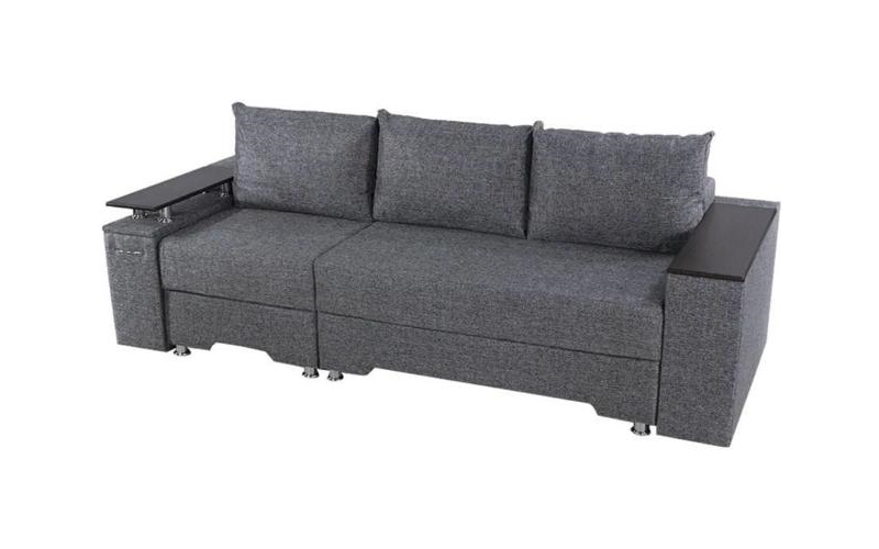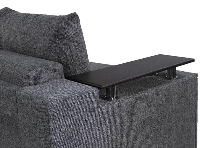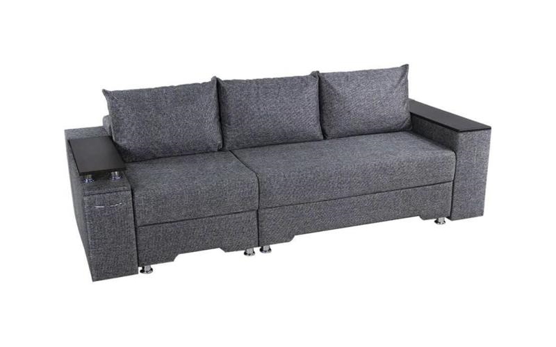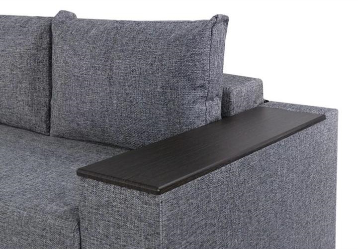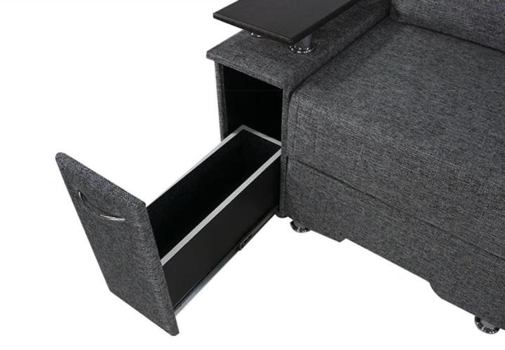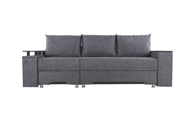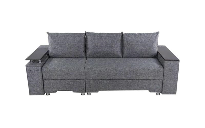 Под спальным местом располагается вместительный ящик для хранения постельного белья. Софа дополнена оригинальными функциональными подлокотниками. Один — с надстройкой и барным (выдвижным) ящиком, второй — дополнительная ниша для белья.