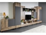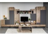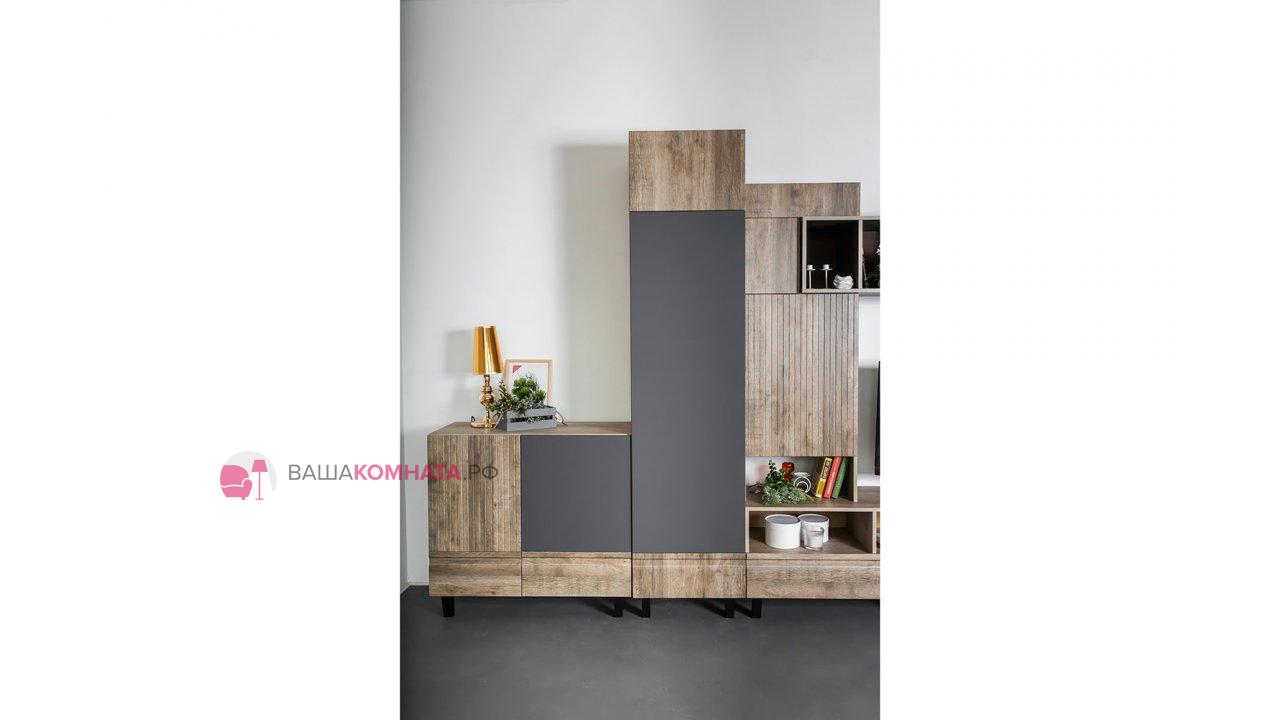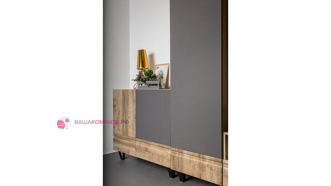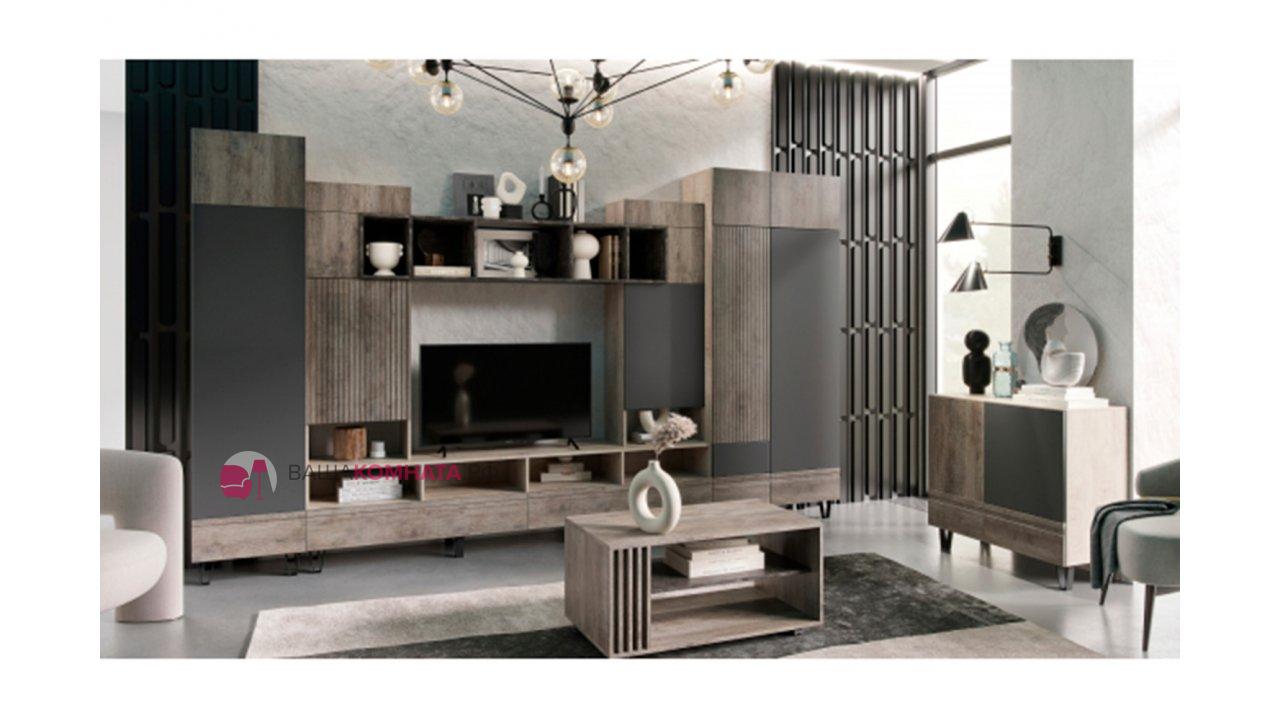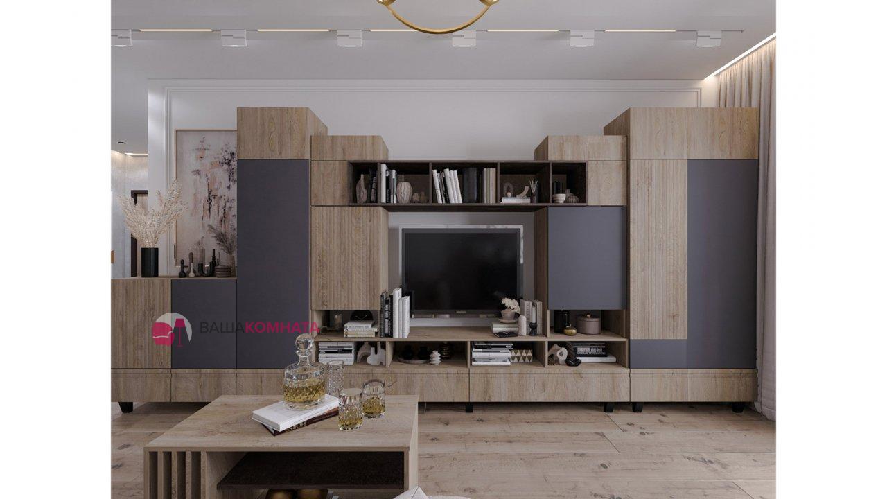 Модульная гостиная "Нота-28" - Дуб скандинавский бежевый+Графит / дуб эндгрейн+Ателье темный