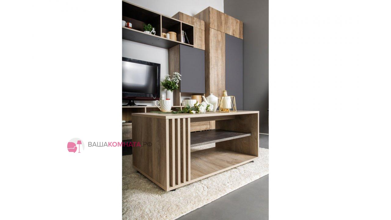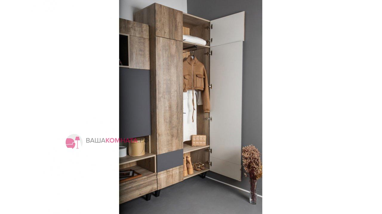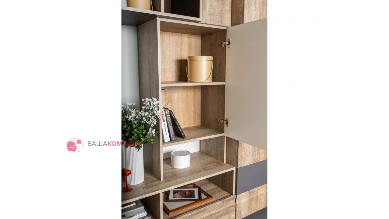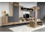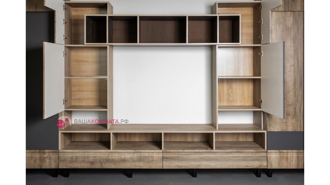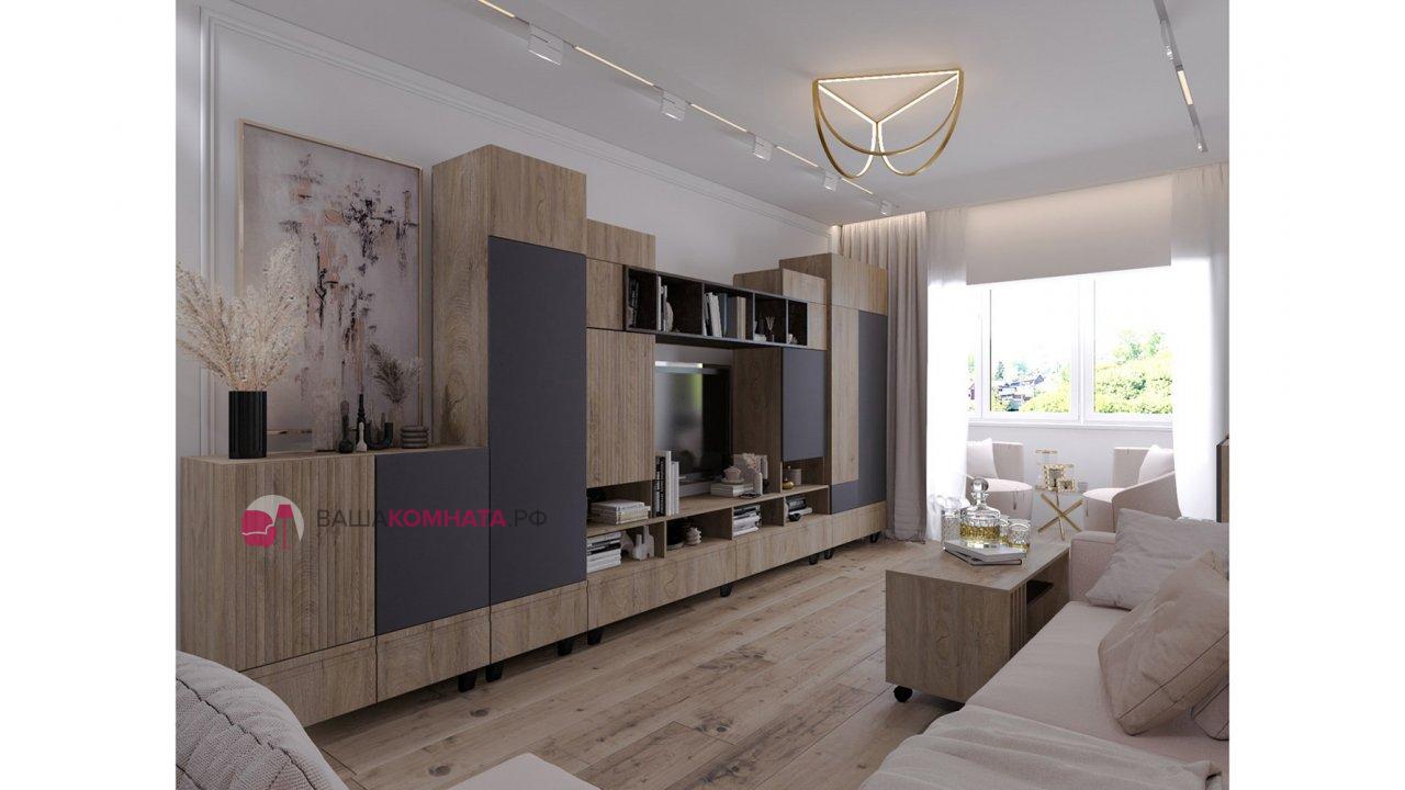 Модульная гостиная "Нота-28" - Дуб скандинавский бежевый+Графит / дуб эндгрейн+Ателье темный