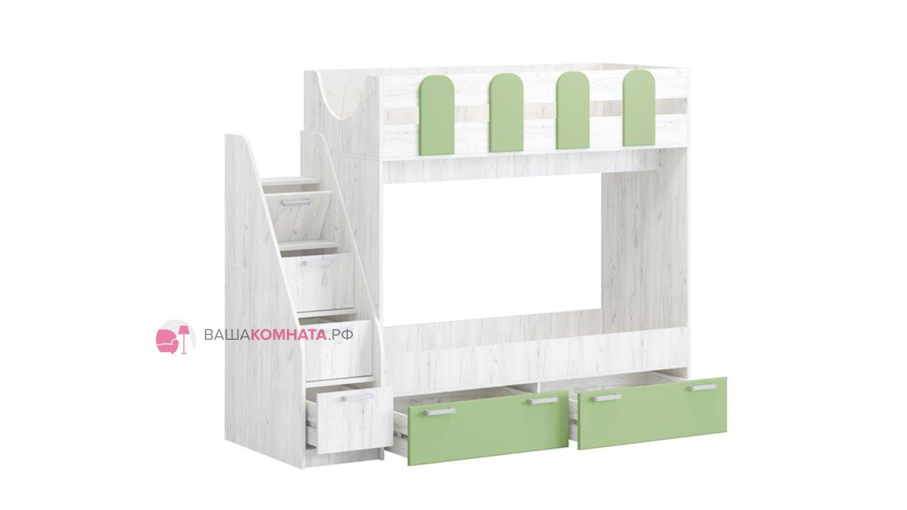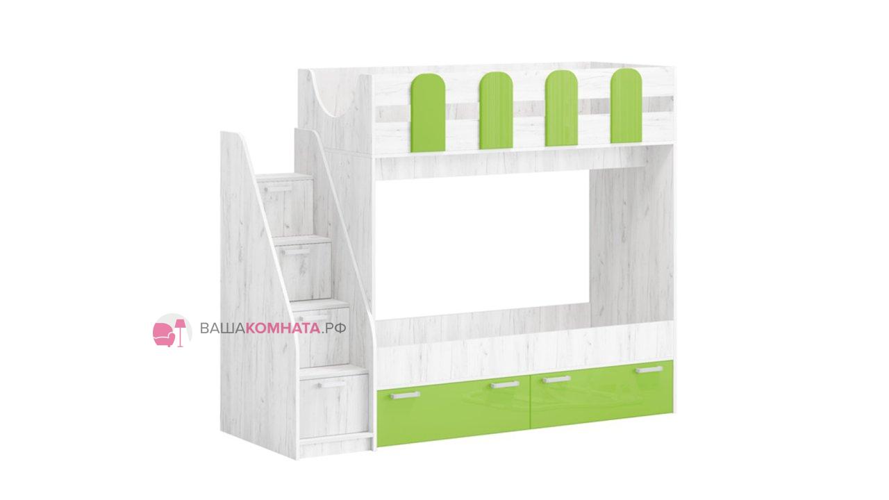 Кровать двухъярусная "Бемби-11" 0,8*1,8 м СЛ - Лайм глянец / Дуб Крафт белый SL