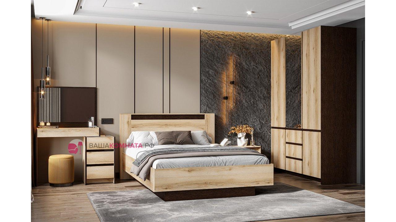 Кровать двойная №3 (Страйп) 1,6*2,0 м с подъемным механизмом (Серия 3) - Дуб Делано / Дуб Венге