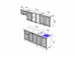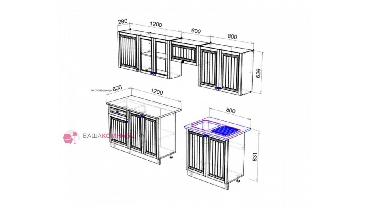 Внимание! Стеновые панели, вытяжки, мойки, посудосушители, лотки для столовых приборов приобретаются дополнительно. Стол под мойку столешницей не комплектуется.