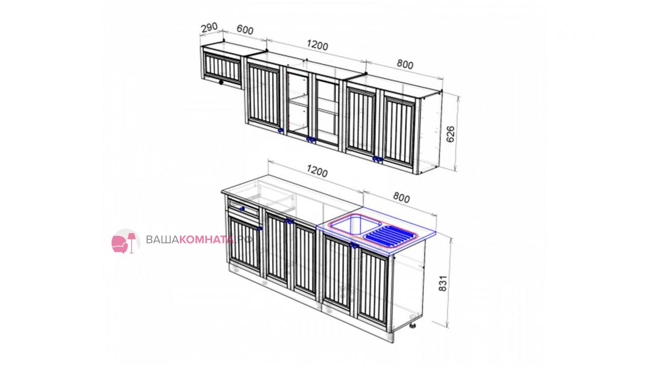 Внимание! Стеновые панели, вытяжки, мойки, посудосушители, лотки для столовых приборов приобретаются дополнительно. Стол под мойку столешницей не комплектуется.