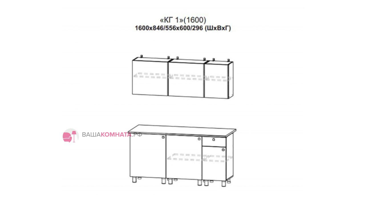 Верхние модули (ВхГ) 556х296 мм: Ш600(1ств)*2 шт., Ш400.