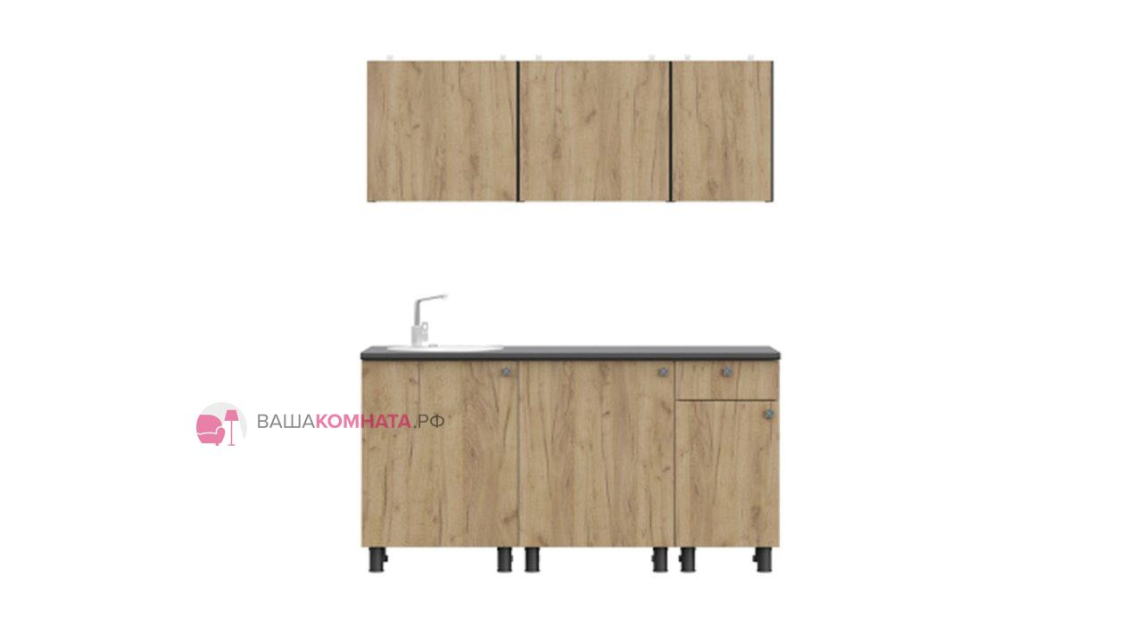 Кухонный гарнитур "София" 1,6м (КГ-1) - Белый/Дуб Золотой/Чёрный