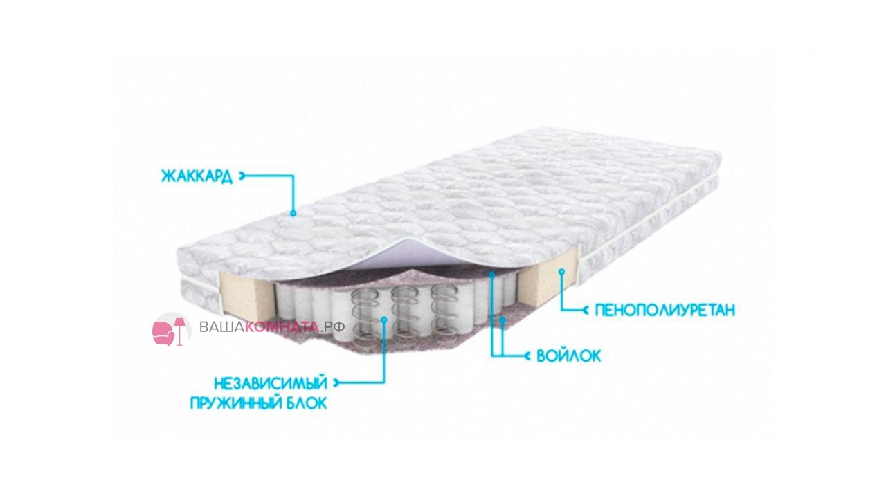 Матрас средней жесткости на основе блока независимых пружин, который обеспечивает хорошую поддержку позвоночника и грамотно распределяет нагрузку, приходящуюся на матрас. В качестве наполнителей используется современные гипоаллергенные материалы и объемный войлок, которые создают комфортное спальное место.