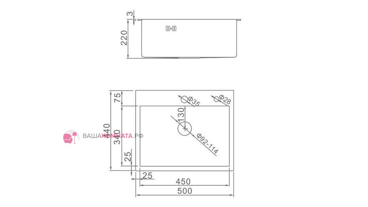 Мойка нержавеющая врезная AFLORN (500мм) SL - Сатин SL