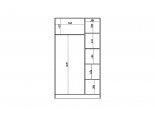 За двумя дверьми находится широкая штанга для вешалок-плечиков с верхней одеждой, деловыми костюмами, красивыми платьями и другой одеждой. Полки, скрытые за боковой дверью, пригодятся для сложенной одежды, постельного и нижнего белья, разнообразных аксессуаров и коробок с обувью.