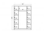 За двумя центральными дверьми находится широкая штанга для вешалок-плечиков с верхней одеждой, деловыми костюмами, красивыми платьями и другой одеждой. Полки, скрытые за боковыми дверьми, пригодятся для сложенной одежды, постельного и нижнего белья, разнообразных аксессуаров и коробок с обувью.