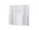 За двумя центральными дверьми находится широкая штанга для вешалок-плечиков с верхней одеждой, деловыми костюмами, красивыми платьями и другой одеждой. Полки, скрытые за боковыми дверьми, пригодятся для сложенной одежды, постельного и нижнего белья, разнообразных аксессуаров и коробок с обувью.