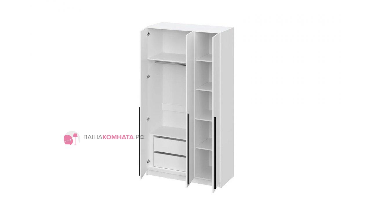 Шкаф "Берген" ШК-1200 с зеркалами и ящиками - Белое дерево
