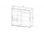 • Секция, выполняющая функцию антресоли, располагающаяся над вышеперечисленными секциями по всей длине шкафа, поделена двумя перегородками на три равные части шириной 645 мм. (Общий габарит секции Д.1966 х В.400 мм.).