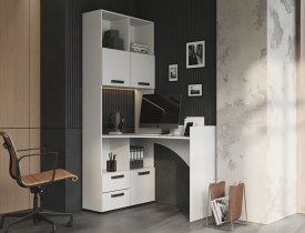 Письменный стол ПС-01 изготовлен из качественного ЛДСП, что гарантирует его долговечность. Стол состоит из столешницы, ящика и большого отделения с дверкой и одной полкой. Отлично подходит для комнаты школьника или студента.