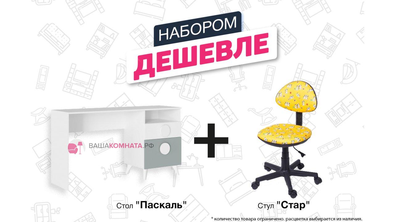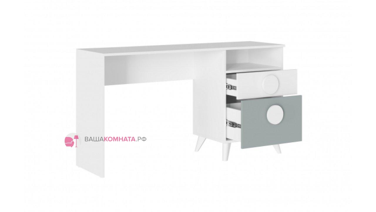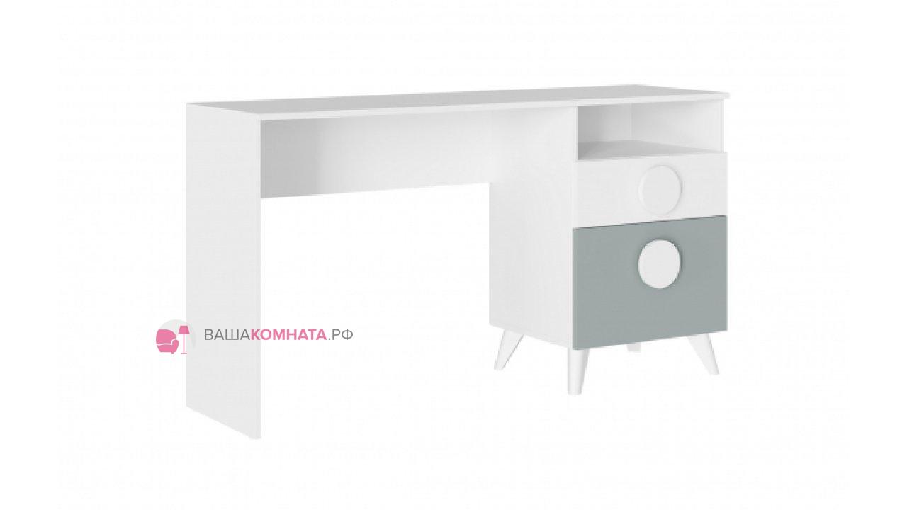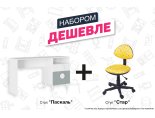 Стол письменный СП-001 "КУБО" + Кресло компьютерное "Стар" SL - Белый (гладкий) / Грин грей софт (матовый) / Долматинцы (желтый фон)
