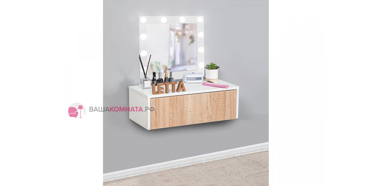 Для изготовления тумбы используются высококачественные ЛДСП и мебельная фурнитура, поэтому наша мебель прослужит вам не один год. Собрать подвесную тумбу для использования её в качестве макияжного или консольного стола очень легко в домашних условиях: для этого вам не потребуются специальные инструменты - хватит вашей отвертки и нашего шестигранника, который идет в комплекте. К набору прилагается подробная инструкция по сборке.