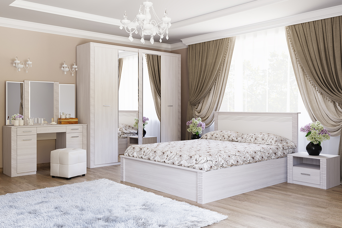 Гамма 20 - качественная фабричная мебель, создана из экологически чистых материалов, оснащенная долговечной фурнитурой и предназначенная для современной гостиной и спальни. Благородство фасадов и корпусов, выполненных в светлой древесной тонировке, подчеркнуто вертикальными фасадными накладками, выполненными в тон фасада и декорированными волнистой фрезеровкой.