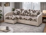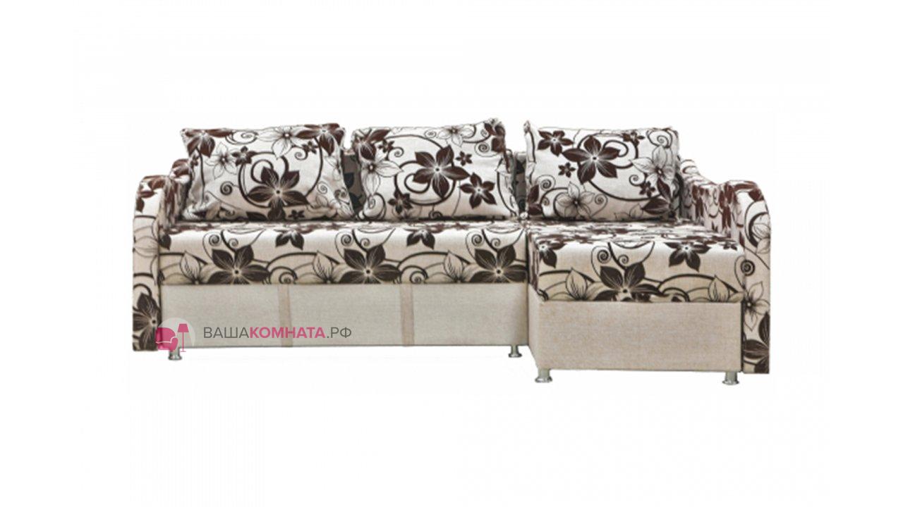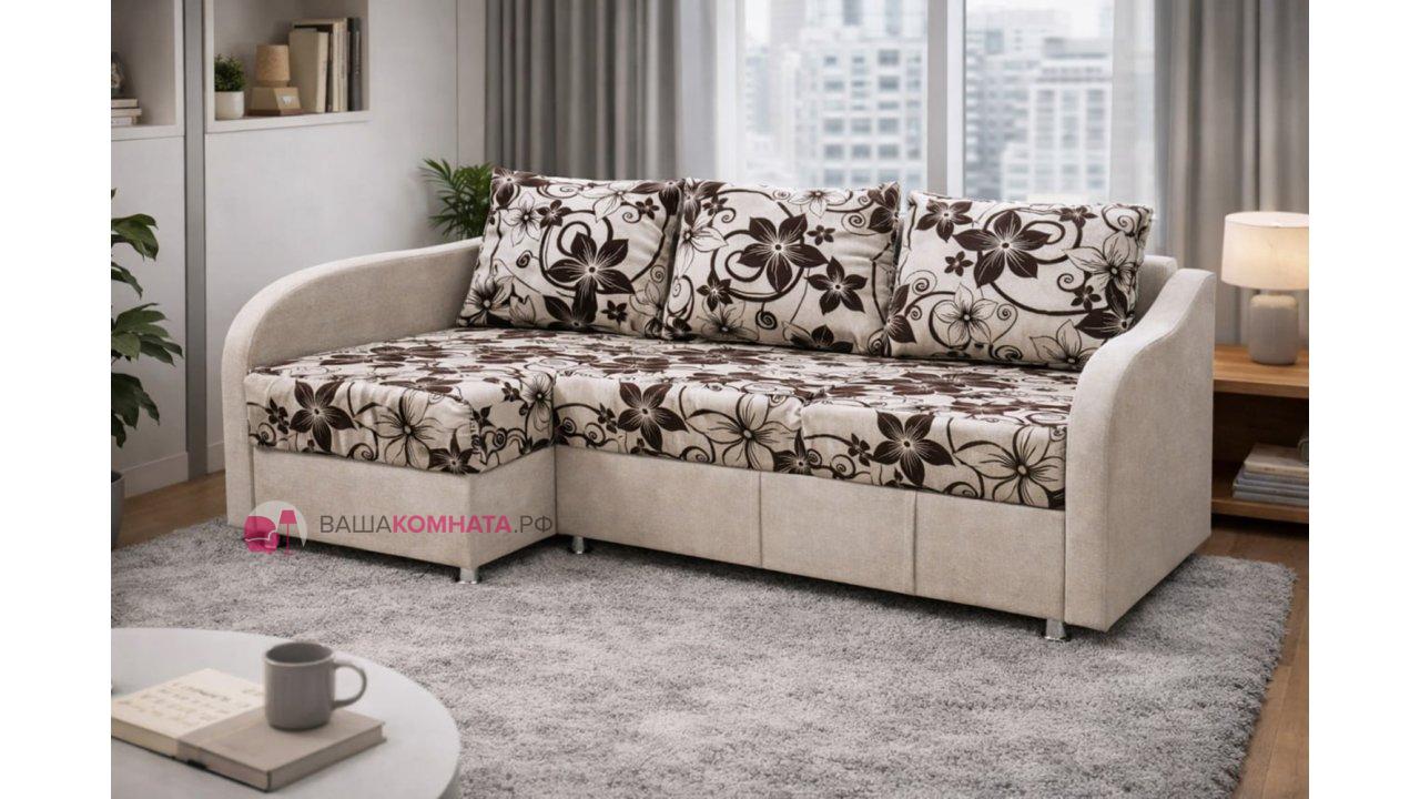 Диван угловой "Байкал" (Кристалл-1) 1,44*2,05 м - Цветы (флок на рогожке) / Бежевый (рогожка)
